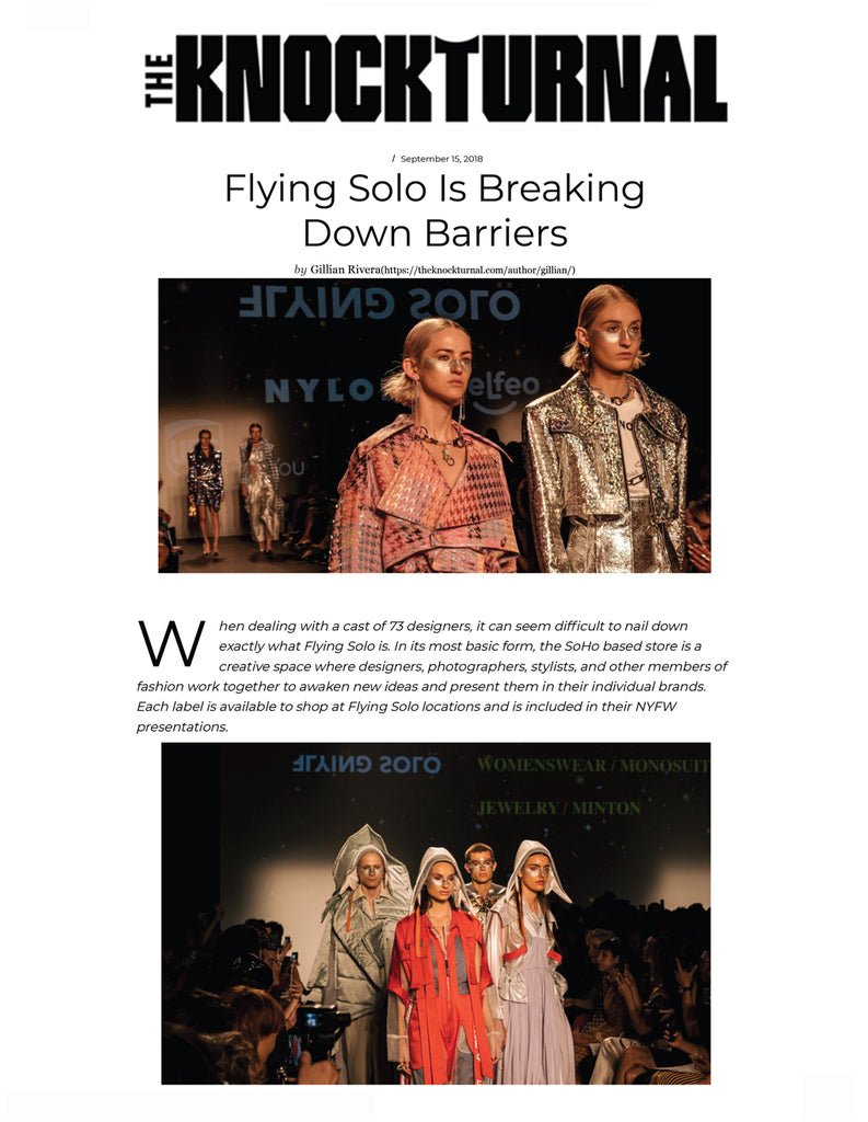 When dealing with a cast of 73 designers, it can seem difficult to nail down exactly what Flying Solo is. In its most basic form, the SoHo based store is a creative space where designers, photographers, stylists, and other members of fashion work together to awaken new ideas and present them in their individual brands. Each label is available to shop at Flying Solo locations and is included in their NYFW presentations.